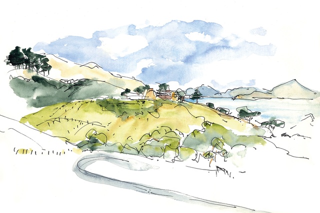 I experienced his enthusiasm as a student, too. At one of our first mentoring catch-ups, Pip decided that we’d get a better idea of the site if we climbed over his neighbours’ fence. So, we did — each with a watercolour sketchbook under one arm.