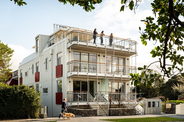 An example of waste-conscious design is 26 Aroha Avenue, a Jasmax-designed multi-unit development in Auckland. Developed by Blair and Jules MacKinnon, the project replaced a single 1920s bungalow with 13 sustainable rental apartments on a 900m² site.