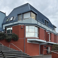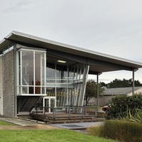 A long-running commercial firm best known for the monolithic black BNZ Building (1984) in Wellington, Stephenson and Turner completed the Porirua Aquatic Centre in 1998. Replacing a smaller recreational centre built in the 1970s, the Arena was developed alongside the Aquatic Centre to create the first ‘wet and dry’ amenity in the lower North Island. Designed for versatility, it houses a sports stadium with retractable seating, a smaller gymnasium, a theatre and meeting rooms. The project was funded in part by Porirua City Council entrepreneurship; a large block of farmland across the harbour at Aotea was acquired and then resold for development.