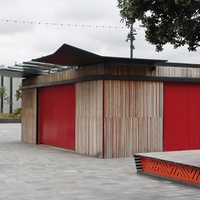 The first stage of a plan to revitalise the city centre, the project includes food outlets, public toilets and external seating. Bestowing an NZIA Wellington Architecture Award in 2016, the jury wrote, “The building accommodates… amenities which are not typically closely coupled, within a compact footprint. However, through clever planning and screening, this finely crafted ‘object’ works. Timber, glass and metal combine to create a very robust yet welcoming facility… Through the deployment of simple patterns and bright colour, a subtle Pacifica theme is evoked, especially when shadows from the glass canopy fall across the structure’s timber skin.”