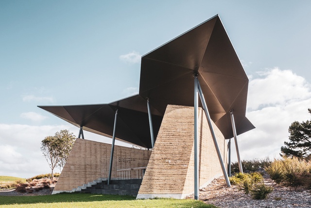 His projects embraced awkwardness in the best sense of the word. Not slick or easily elegant, they were often the result of full-frontal battles with clients or himself. Buildings born of the struggle: “forged in flame”, he might have claimed. For example, the Mountain Landing Hilltop house where the orthogonal timber building suddenly bursts forth with a canting tower of robust stones and window piercings, or the apparently simple Congreve plan, which reveals hidden secrets, or the entry at the Jasmax office where the surfboard-inspired entry canopy teeters in obdurate instability. And, of course, the wonderful Rore Kahu, the Marsden Cross memorial, where elegantly curving rammed earth walls are sheltered by a canopy from another language: angular and mismatched but made entirely appropriate by the vigour of belief driving the design.