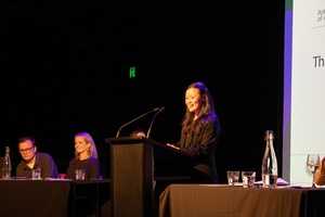 Former broadcaster and generally theatrical speaker Gordon Harcourt opened the debate with an impassioned speech for the affirmative side. According to Harcourt, Artificial Intelligence isn’t the Terminator, it’s more like… a labrador. In its unending desire to please us, AI will create an Auckland that astounds, our hedonist utopia. Immediately following his populist posturing, some surreptitiously bribe-shaped chocolates made their way from the opposing team’s table into Chapman’s hands (who — forever the fair moderator — handed them promptly out to the audience).