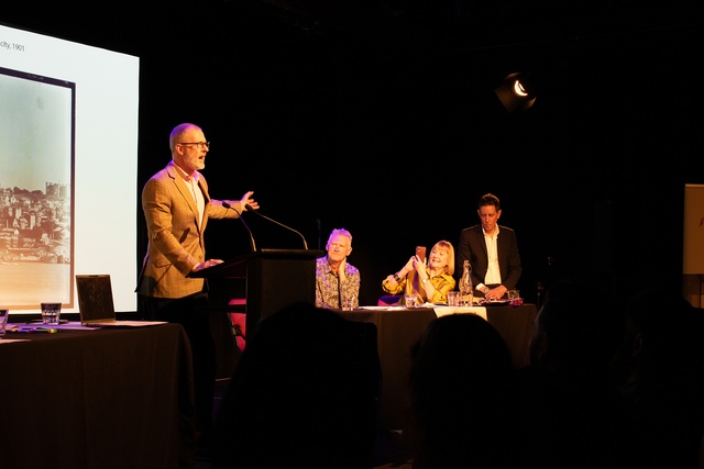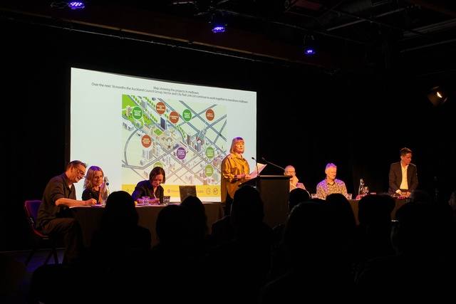 Six speakers were randomly assigned into teams of three on the opposing or affirming side, facing off one-on-one, conferring, and sending one member out for a summation of the team argument. The speakers traditionally represent a cross-section of the built-environment world: architecture, urbanism, engineering, and adjacent overlaps in publishing and commentating. The incorruptible Wallace Chapman (of RNZ fame) presided.