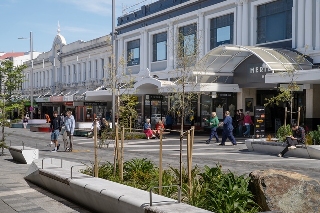Elements of play are inserted into the framework which, together with planting and seating, provide moments of rest for children and adults alike. The design of the four blocks represents an engagement with local iwi and incorporates artwork into the built environment with paving and artworks. The project is a successful reinvigoration of the urban environment in Dunedin.”