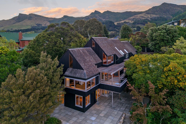 Sensitively sited overlooking Governors Bay, the home’s lofty set of gable forms set up a rhythmic geometry, where the home shifts, connects and responds to its landscape and established gardens.