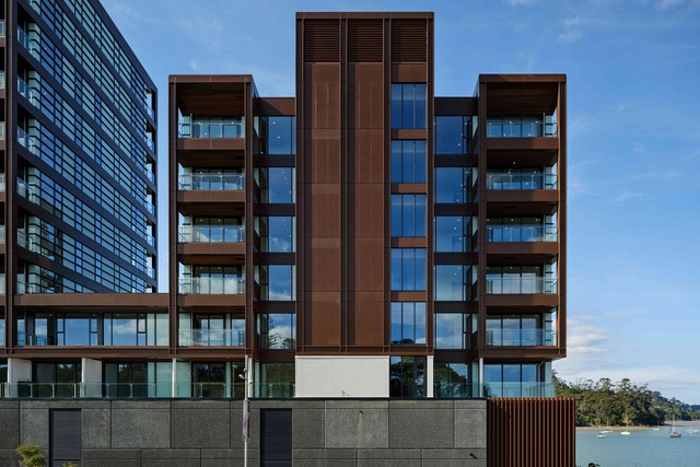 The judges said: “The Catalina Bay Apartments set a benchmark for high-density living in the Hobsonville area with a varied urban form and response to its context. The building cleverly sleeves a row of three-level townhouses to conceal the above grade car parking behind, while two apartment tower blocks sit on top.